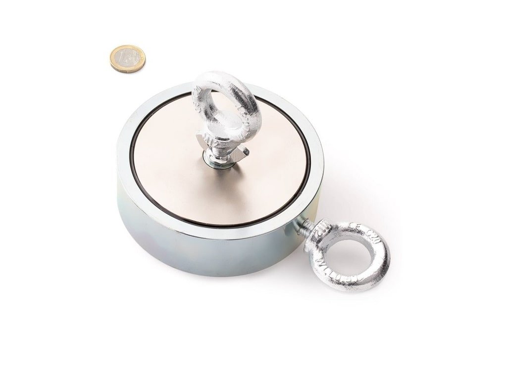 Extra silný obojstranný magnet umožňuje uchytenie magnetu zhora, napríklad pri čistení studne. Má aj druhú možnosť prichytenia z boku, ktorá je vhodná napríklad pri vláčenie po dne rybníka. Fishing magnet má neuveriteľnú magnetizáciu až 2 x 1100 kg!