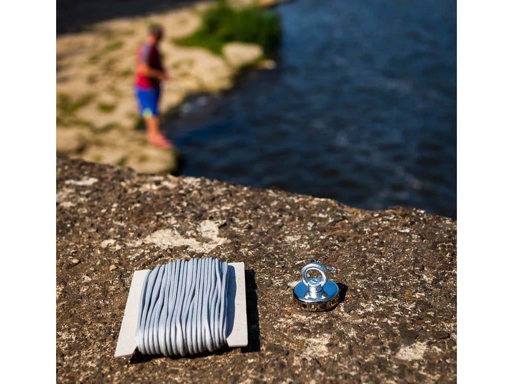Extra silný neodýmový magnet umožňuje uchytenie magnetu zhora pomocou závesného oka. Fishing magnet má neuveriteľnú magnetizáciu až 135 kg!