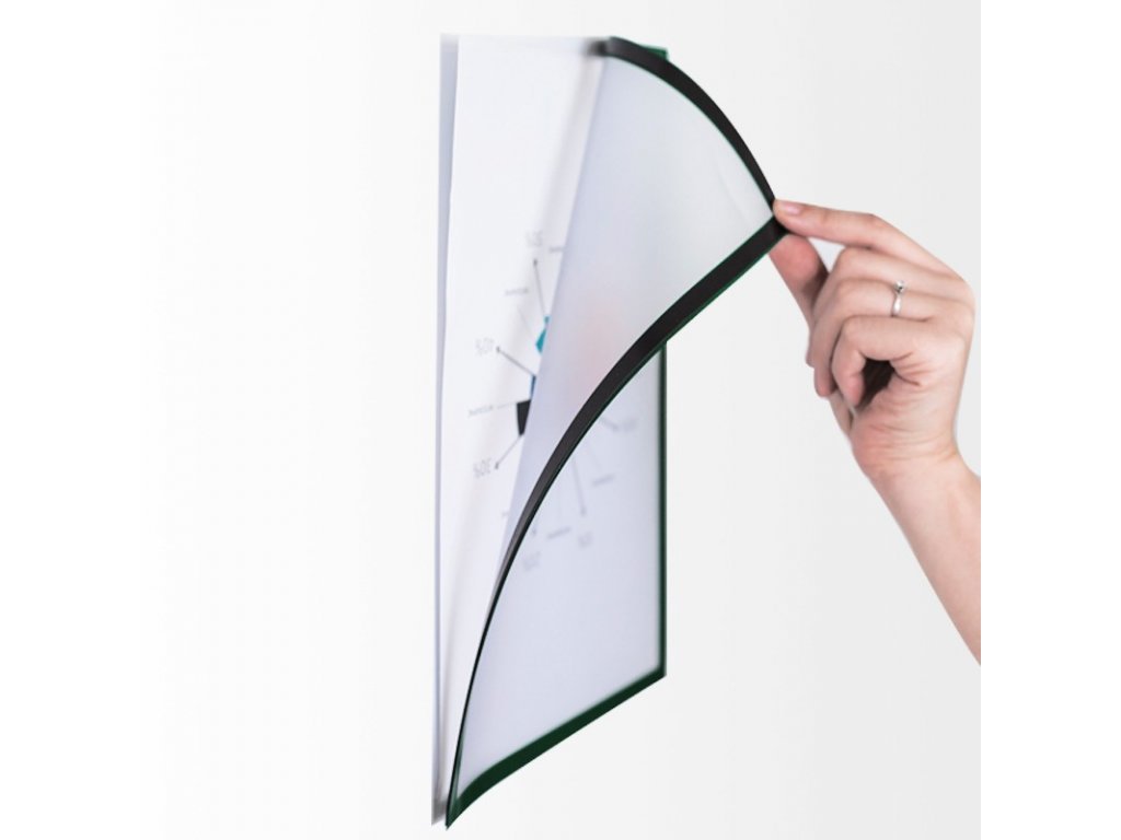 Magnetická kapsa s rámčekom má prednú časť opatrenú otvárateľnou, transparentnou PVC fóliou lemovanou farebným magnetickým pásikom. To umožňuje ľahké vloženie prezentovaných dokumentov. Zadná časť obalu je po celej ploche tvorená flexibilnou magnetickou fóliou hnedej farby. Je vhodná pre názorné zobrazenie správ v spojení s „whiteboardom“ alebo inou kovovou plochou. Môže byť pripnutá ako v horizontálnej, tak vo vertikálnej polohe.