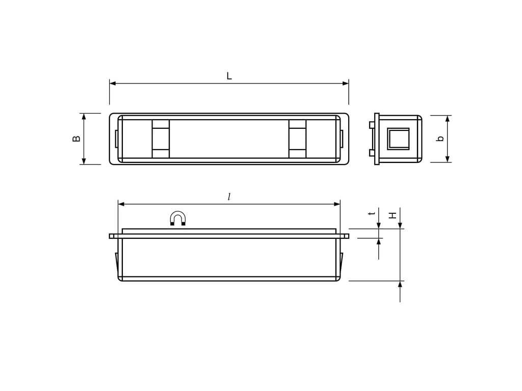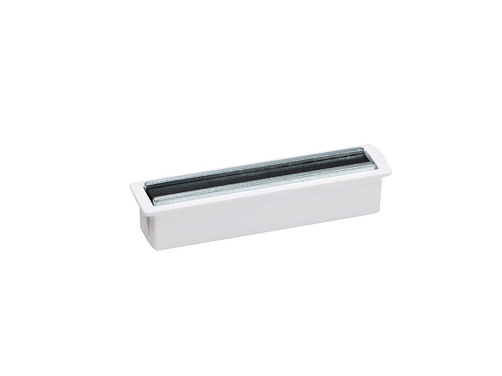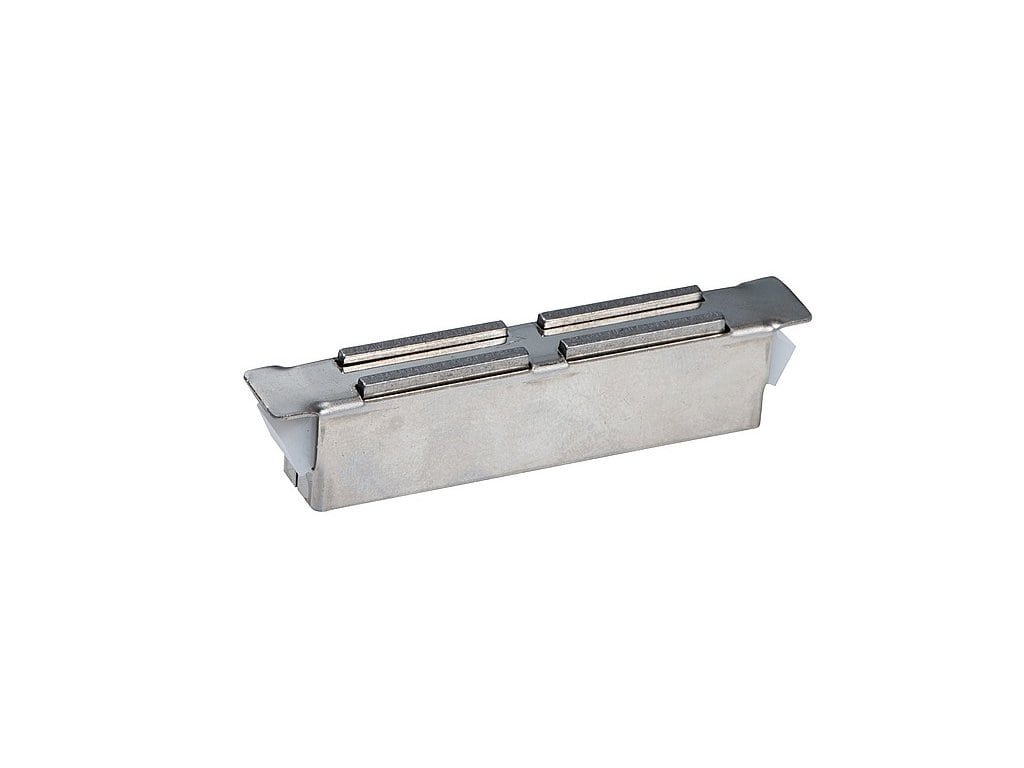 Magnetický systém obdĺžnikového pôdorysu pre zapustenie do drážky v nábytku, ktorý využíva uzamykacie zarážky pre jednoduché upevnenie magnetického kovanie v drážke bez potreby dodatočného uchytenia. Systém je dodávaný vrátane vhodného kovového protikusu.