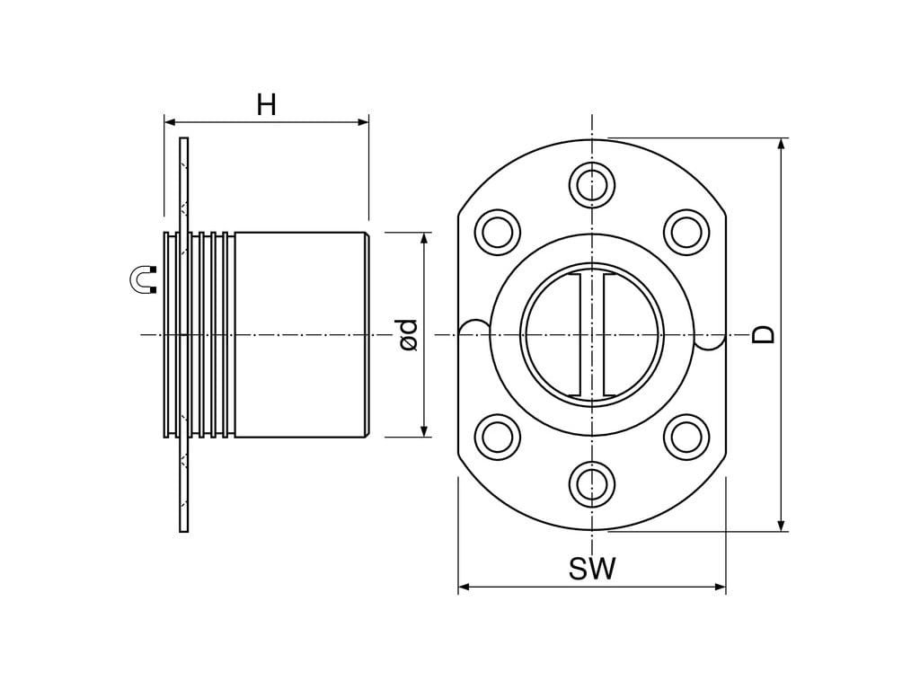 Táto varianta je navrhnutá tak, aby sa magnet vo valcovom puzdre umiestnil do vyvŕtaného otvoru v drevenom nábytku. Styčná plocha je kruhová, telo je rebrovanie a vysunutie je nastaviteľné párom zaisťovacích plieškov, ktoré sú súčasťou balenia.