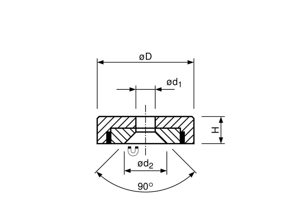 Neodymová magnetická šošovka so stredovou dierou a sražením 13x3,5x4,5 mm