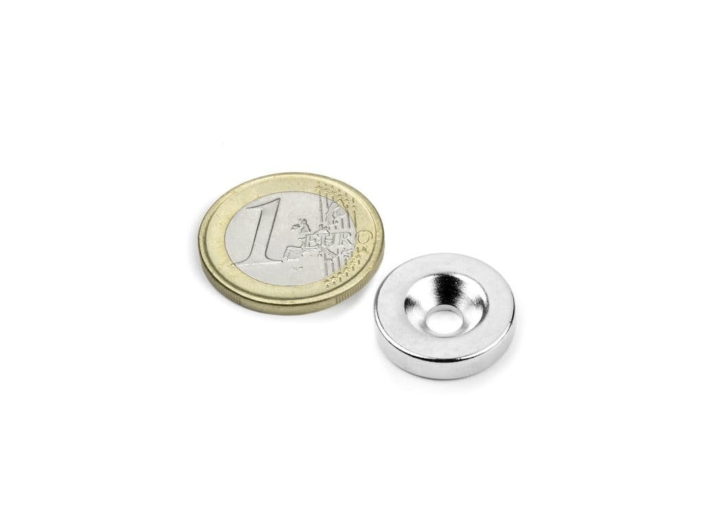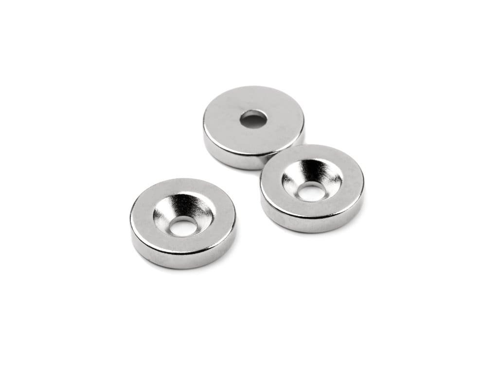 Neodymový magnet medzikružie D 18/4.5 mm, H 4 mm,s vrtaním a zahĺbením, N35,ponikelovaný