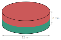 Neodymový magnet valec D 22x6 mm, vodotesný plast, sila 4.1 kg