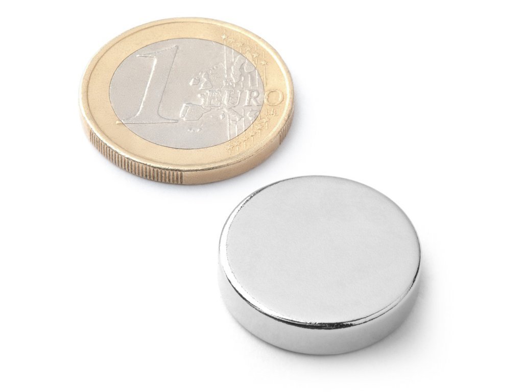 Neodymový magnet valec D 21x5 mm, Neodym, N40, ponikelovaný