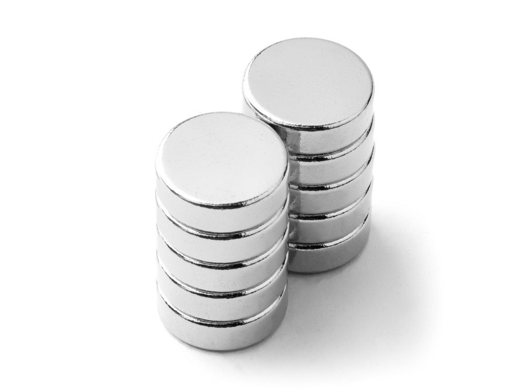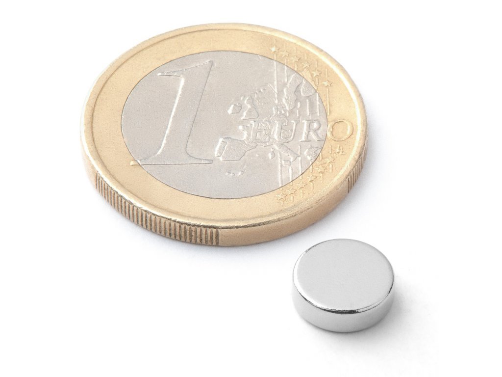 Neodymový magnet valec D 8x2.5 mm, Neodym, N38, ponikelovaný